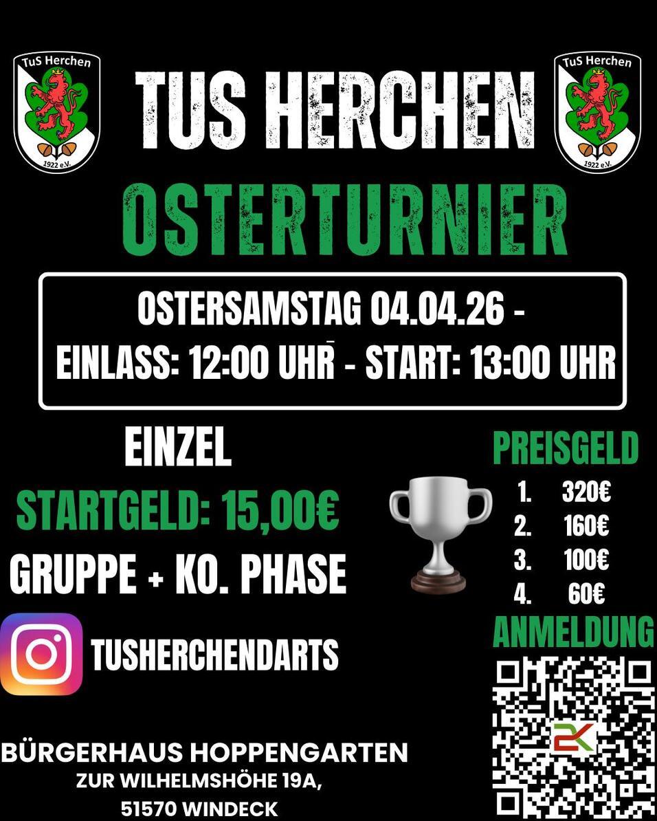 Der TuS Herchen freut sich, alle Darts-Freunde und Interessierten zu unserem großen Osterturnier einzuladen.