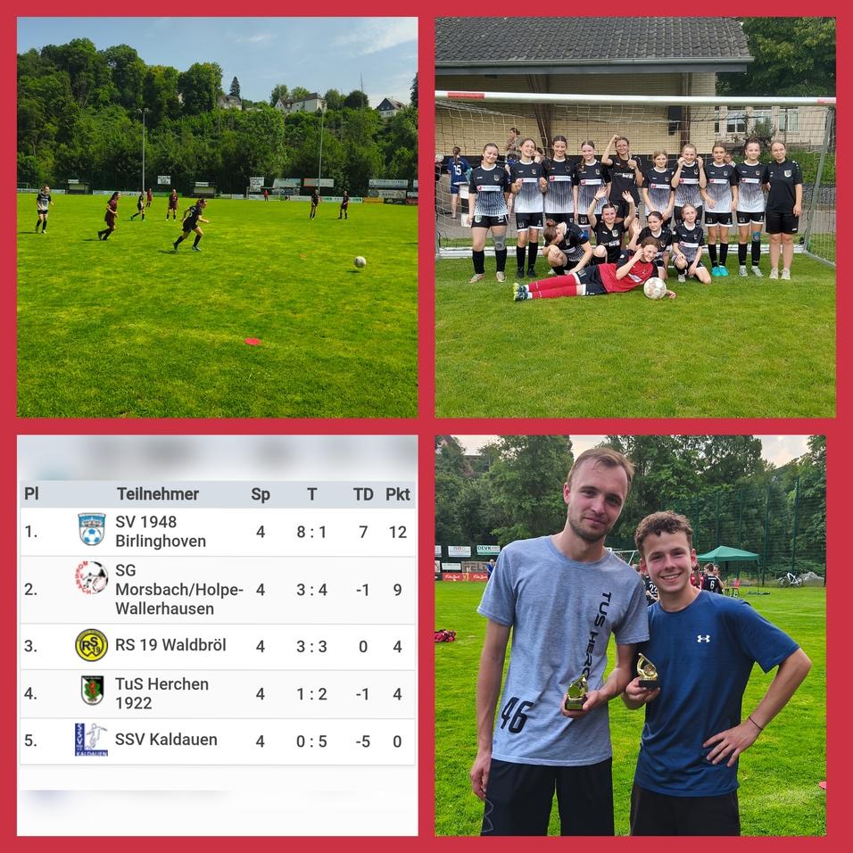 Ein riesen Erfolg war der 1. Herchener Sommercup der C-Juniorinnen. Bei strahlendem Sonnenschein trafen sich im Sportpark Haus Tannenhof die C-Juniorinnen Teams des SV Birlinghoven, SSV Kaldauen, RS 19 Waldbröl, SG Morsbach/Holpe-Wallerhausen und natürlich des TuS Herchen. Im Modus jeder gegen jeden (Spieldauer pro Team 4 Spiele a 20 Minuten) wurde der Sieger ermittelt. Am Ende hat sich der SV Birlinghoven mit 4 Siegen aus 4 Spielen klar durchgesetzt, Turnierzweiter wurde die SG Morsbach/Holpe, Auf den Plätzen 3 und 4 landeten punktgleich RS Waldbröl und unsere Mädels unter Trainerin Lea Rötzel. 5. wurde der SSV Kaldauen.