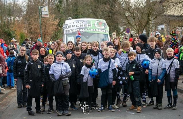 Mit über 50 Teilnehmern nahm unsere Jugend am Herchener Karnevalszug teil. Eine bunt gemischte Gruppe aus Spielerinnen und Spielern unserer B Juniorinnen, sowie D-, E- und F-Jugend, begleitet durch Trainer und Betreuer verbreiteten Spaß und Stimmung bei den unzähligen Zuschauern am Straßenrand. "Bewaffnet" mit Süßigkeiten und bunten Plastikbällen genossen alle Kinder das bunte Treiben.