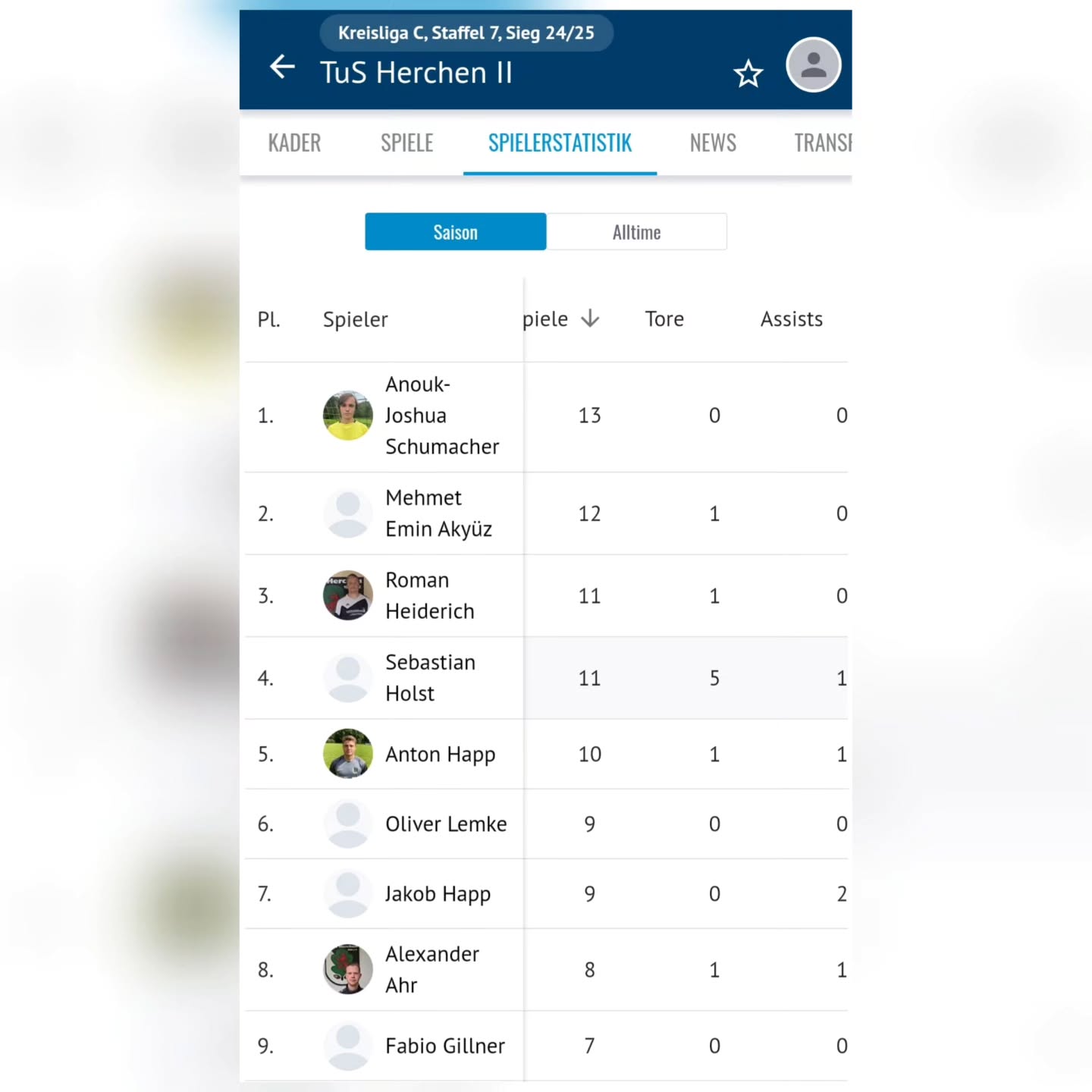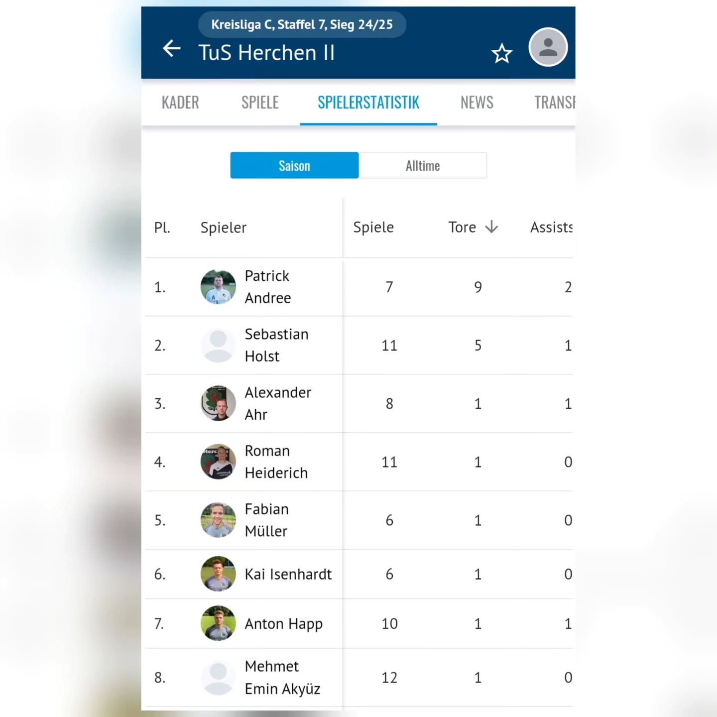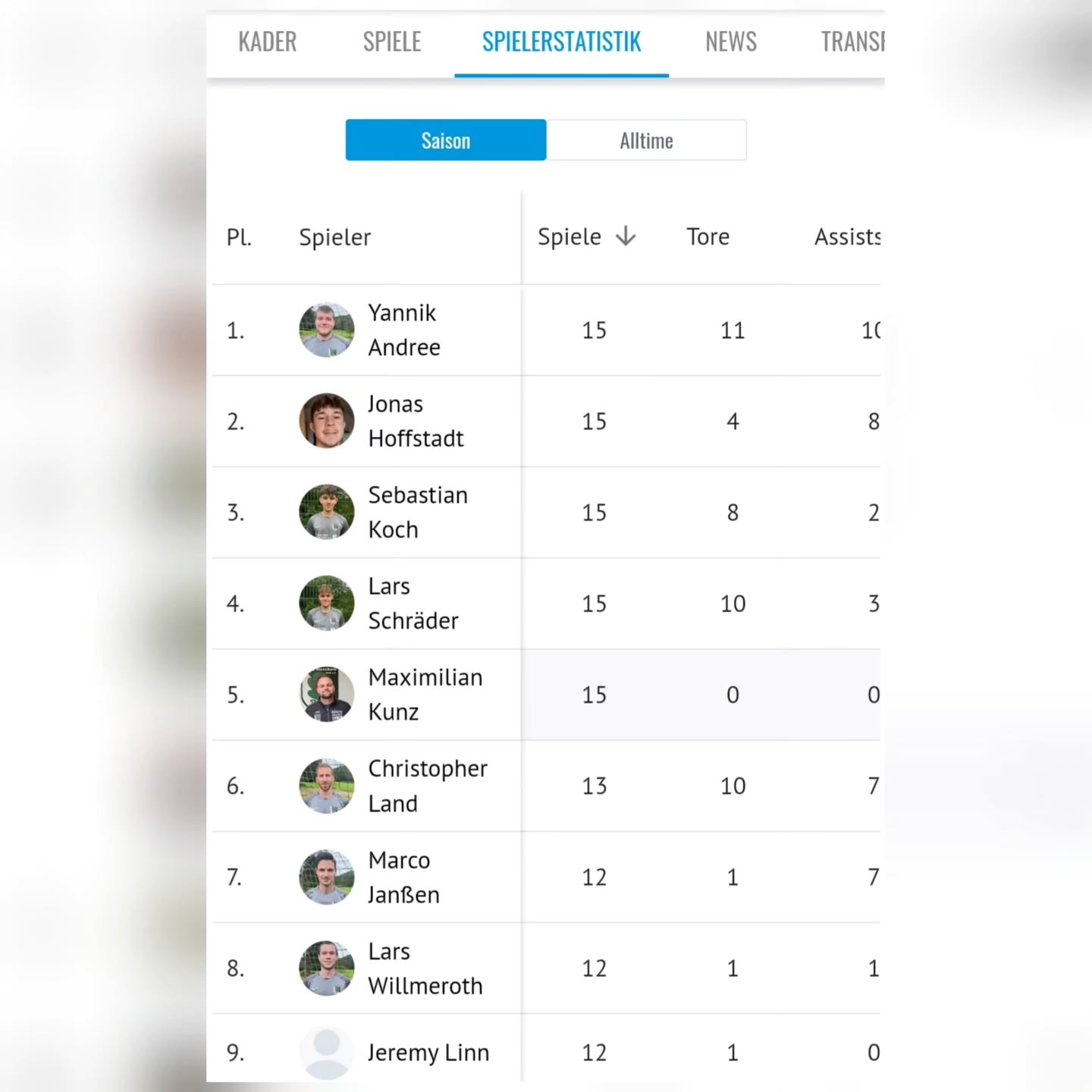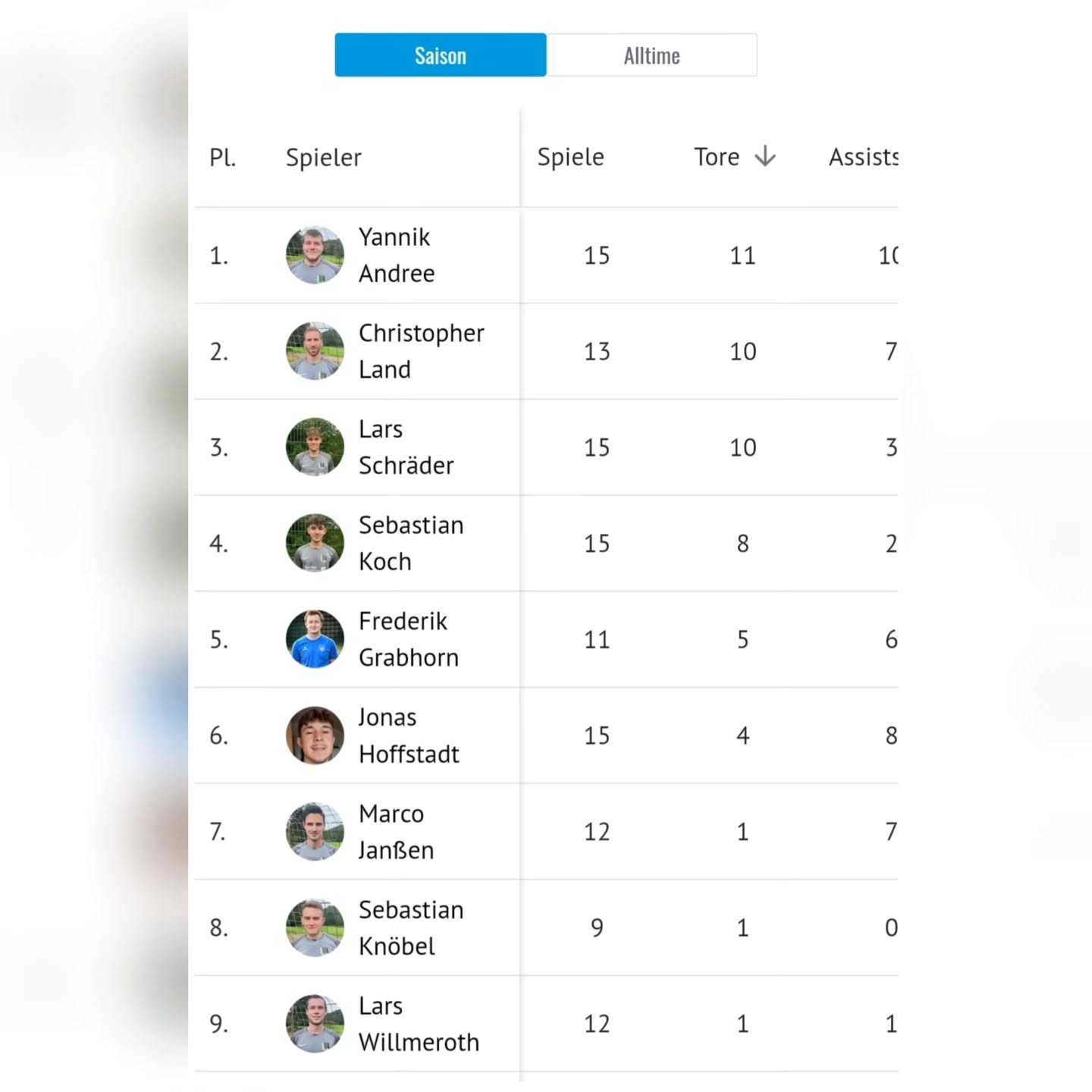 Top Torjäger ist Paddy mit 9 Treffern vor Seba mit 5.