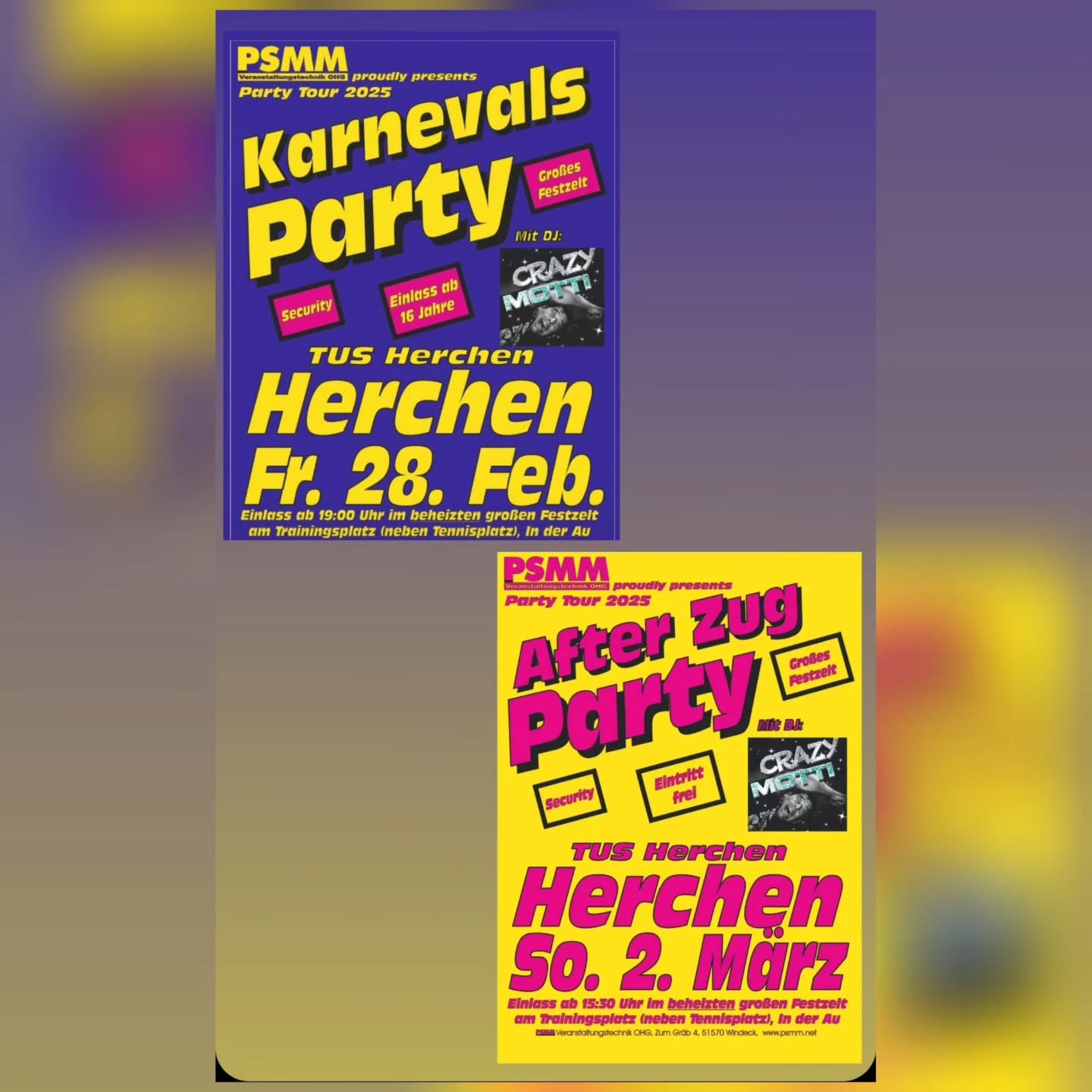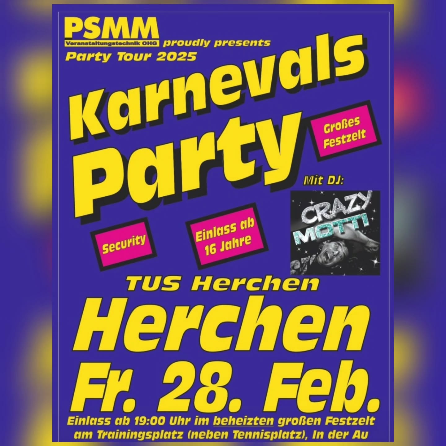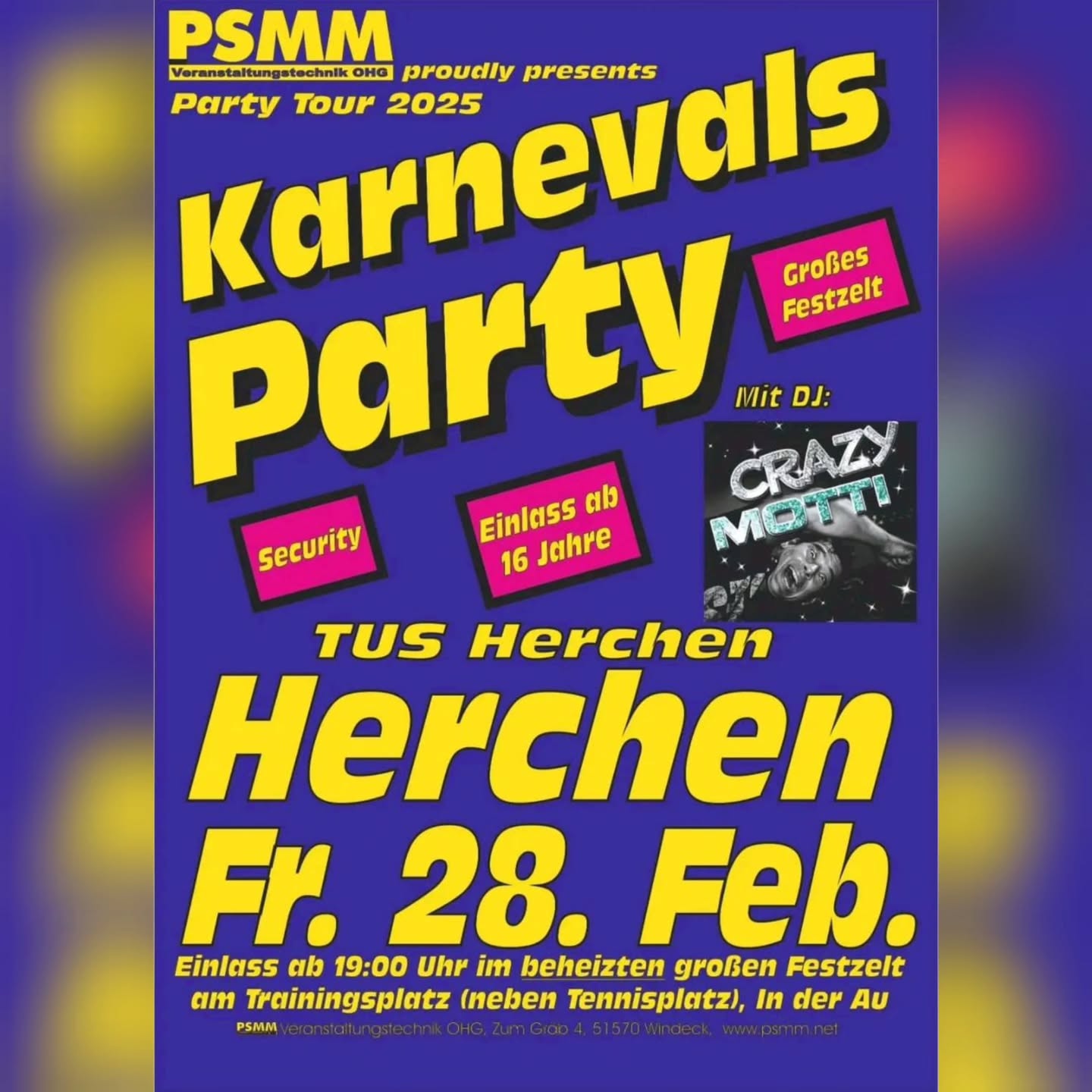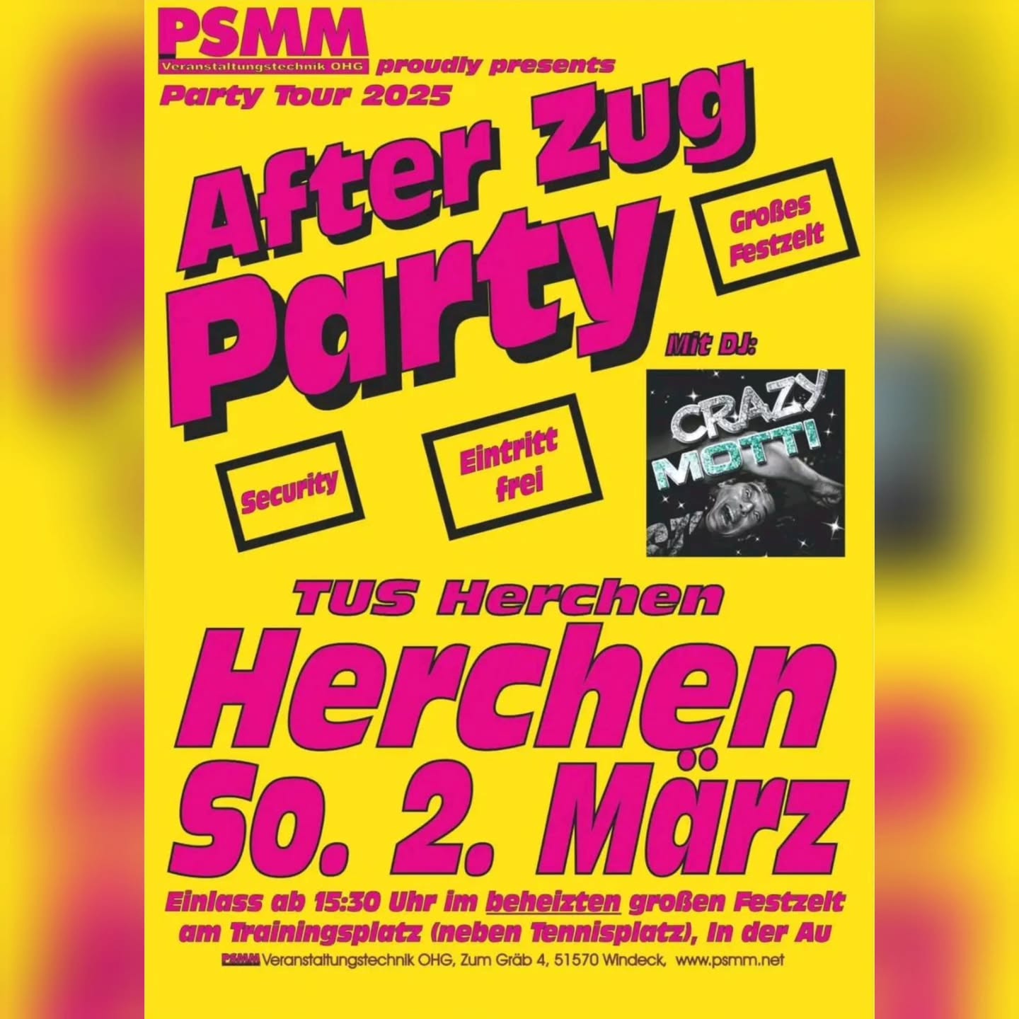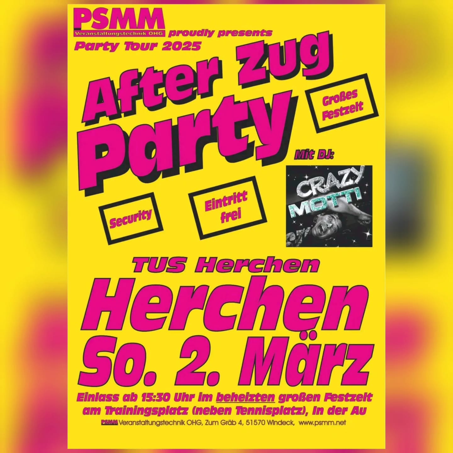 Der TuS Herchen, PSMM Party Service und DJ CRAZY MOTTI freuen sich auf Euren Besuch!