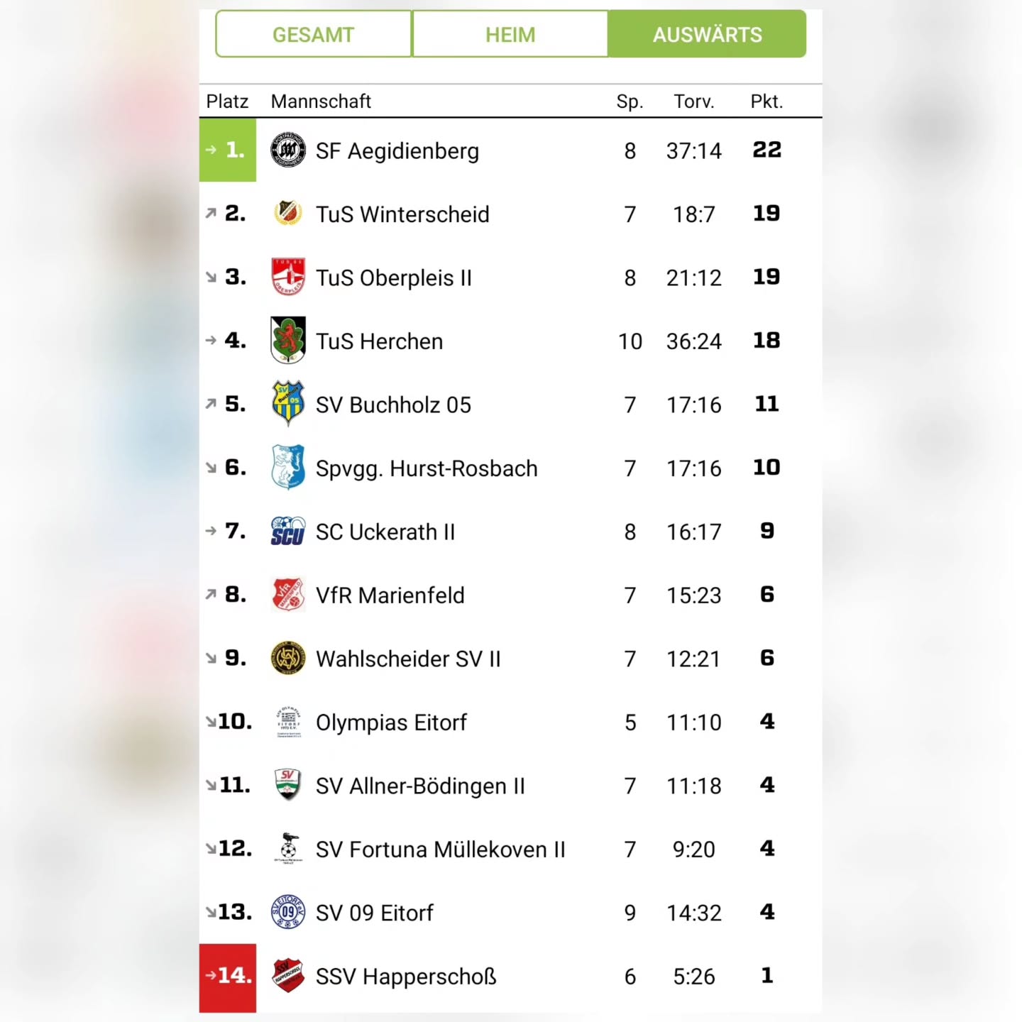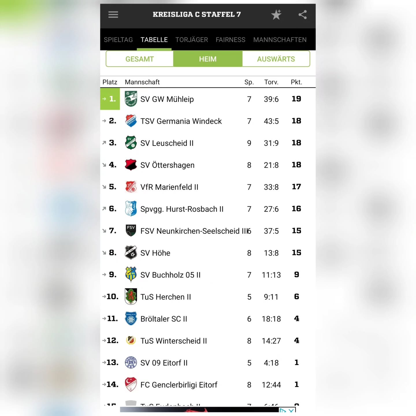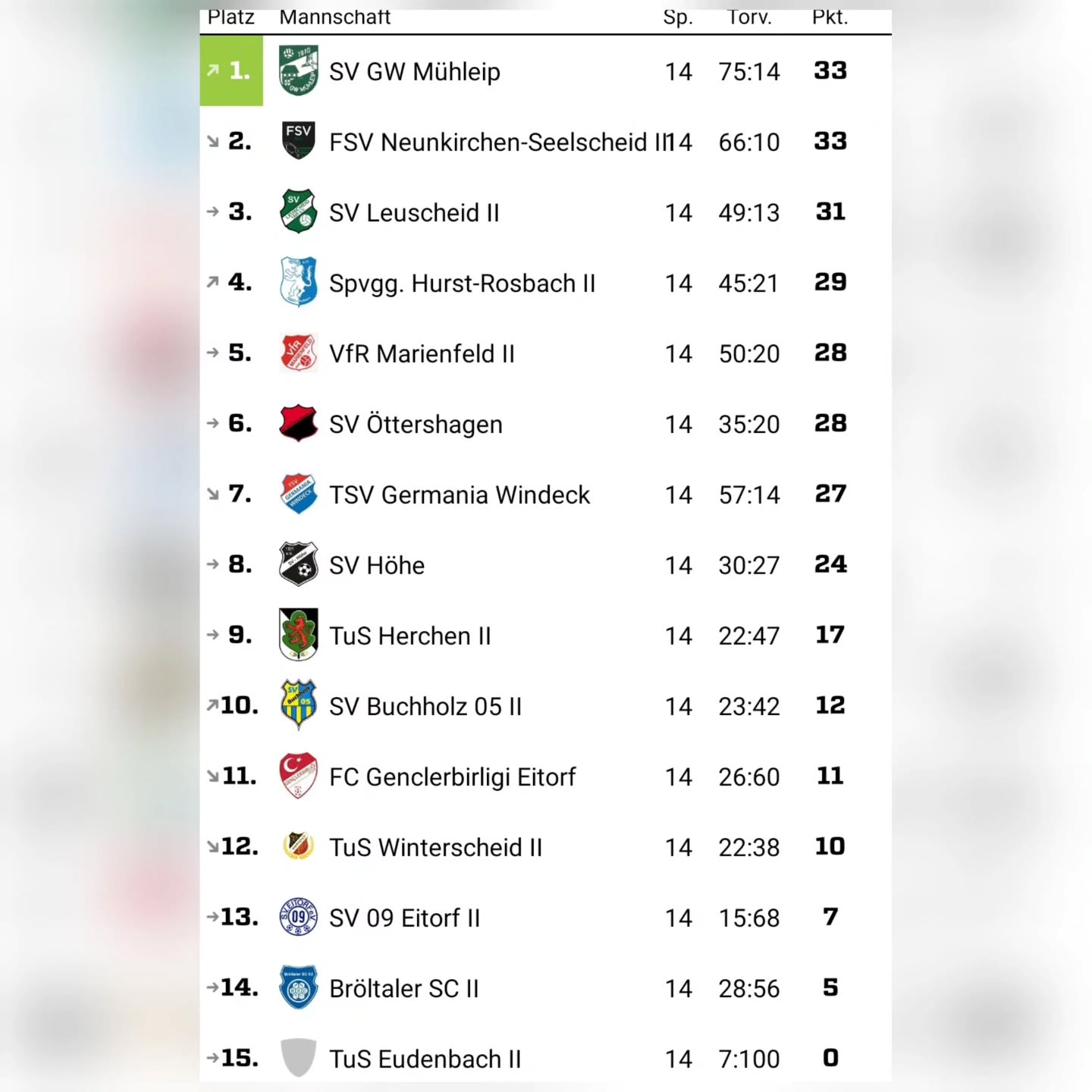 In der gesamten Hinrunde ist es den Jungs gelungen, zu jedem Spiel immer mit mindestens 11 Spielern aufzulaufen, auch wenn es ein paar Mal knapp war und auch schonmal die Reserve der Reserve reaktiviert werden musste. Und so geht's auf Platz 9 mit 17 Punkten (6 Punkte zu Hause und 11 in der Fremde) aus 14 Spielen in die Winterpause. Als Achtungserfolg kann das 2:2 Unentschieden gegen den Aufstiegsaspiranten Leuscheid 2 angesehen werden.