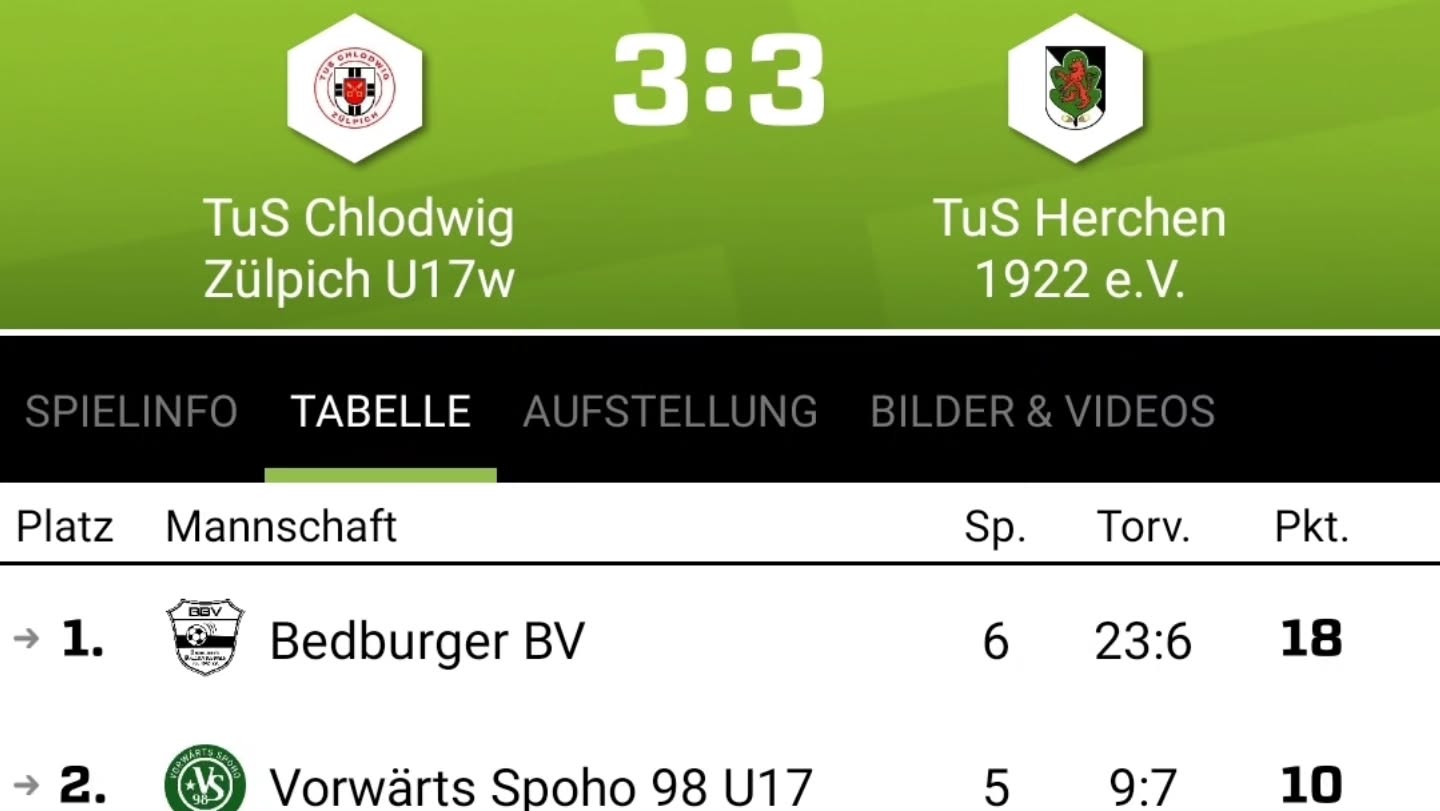 Auswärtsspiel unserer B Juniorinnen bei Chlodwig Zülpich. Nachdem die Mädels letzte Woche einen 3:0< Vorsprung verspielt hatten, war der Spielverlauf formal genau andersrum. Zülpich führte mit 3:0, Ehe unsere Mädels den Turbo zündeten und noch den Ausgleich schafften.