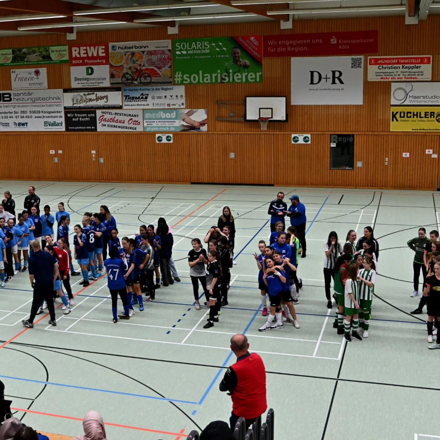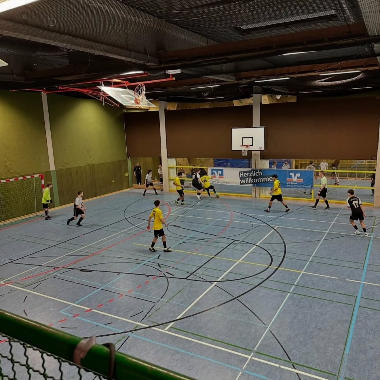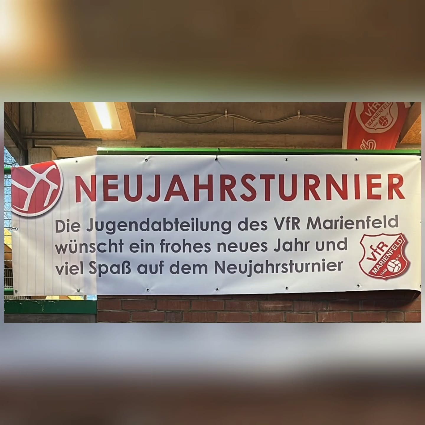 Budenzauber beim Neujahrsturnier. Am gestrigen Abend starteten unsere A Junioren beim Hallenturnier des VfR Marienfeld ins neue Jahr. Am Ende stand Platz 11 für unsere Jungs. Nach einer knappen 1:2 Niederlage im kleinen Halbfinale gegen den ASV Sankt Augustin könnte zum Abschluss der Gastgeber, die SG Marienfeld/Bröltaler SC 1 mit 4:3 nach Elfmeterschießen besiegt werden.