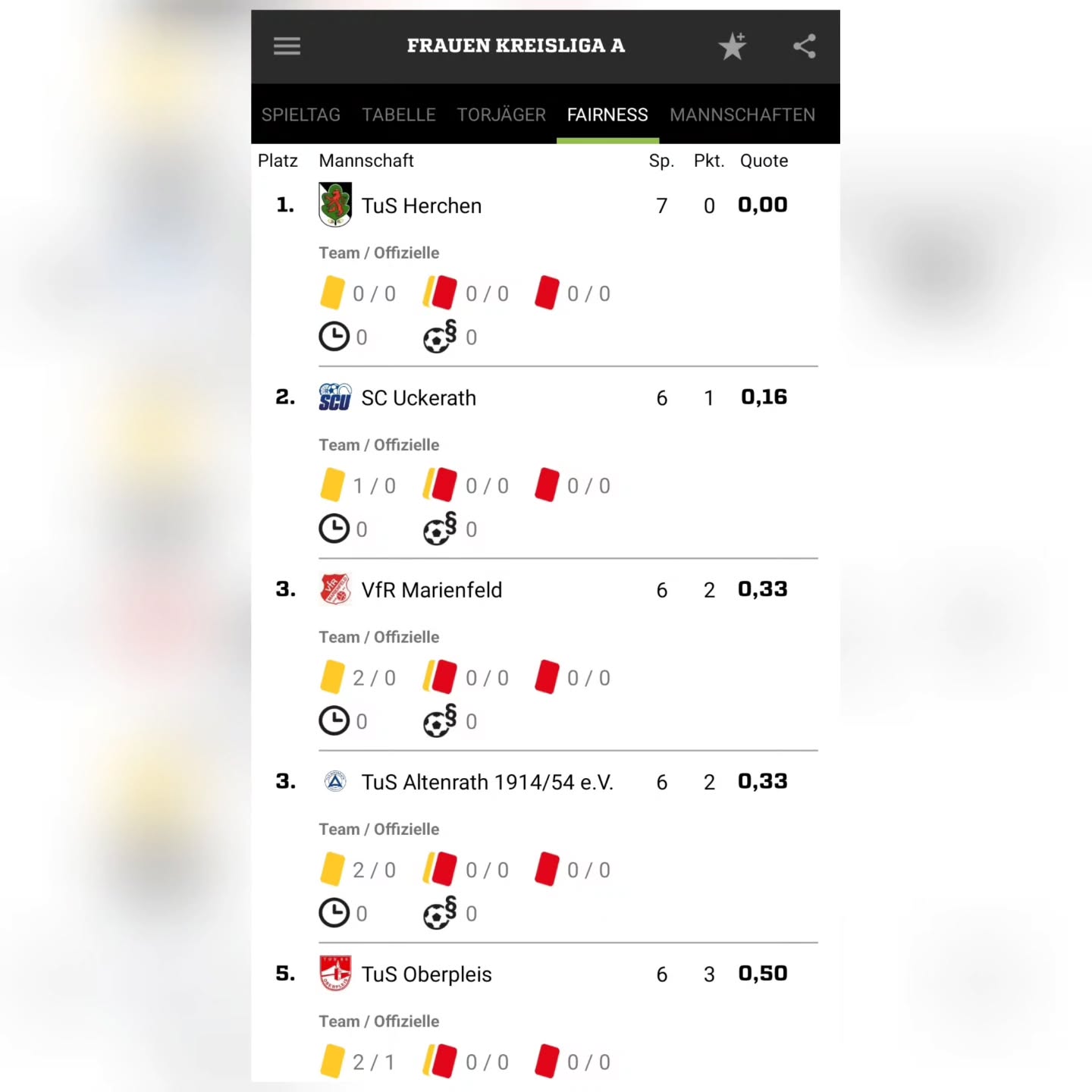 In der Fairnesstabelle belegen unsere Damen den ersten Platz. Bisher 0 gelbe oder rote Karten. Unglaublich.