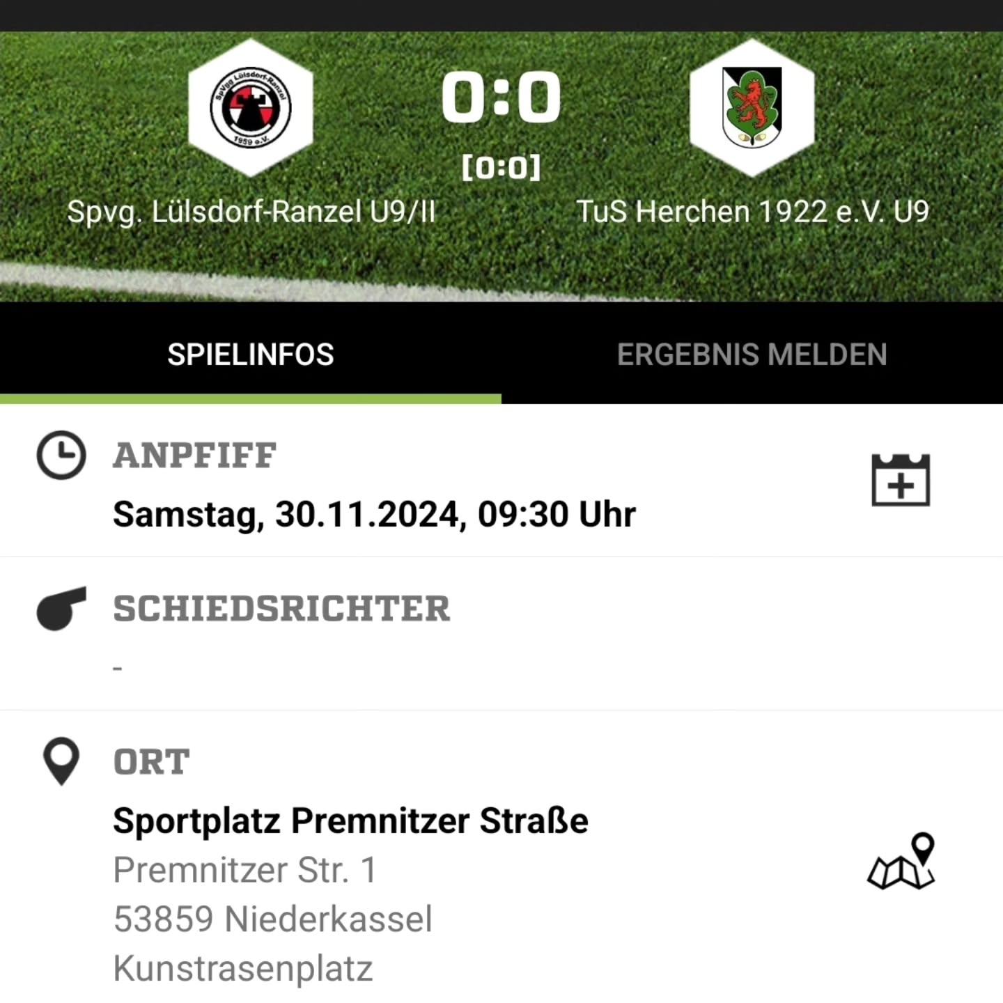 Vor der Winterpause steht noch ein Spiel auf dem Programm. Am 14.12. 12:30 Uhr muss unsere D auswärts beim SV Kriegsdorf ran.