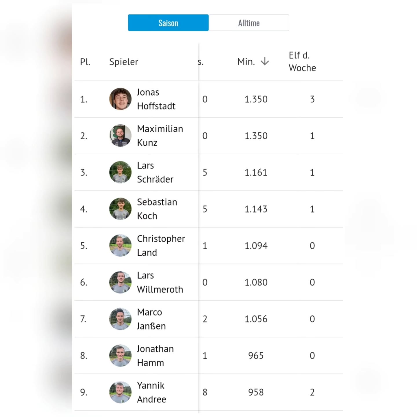 Zu erwähnen ist auch, das diese Saison insgesamt 38. Spieler zum Einsatz kamen.