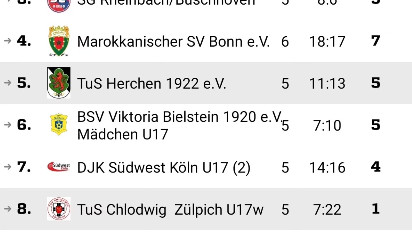 Mit 5 Punkten aus 5 Spielen überwintern unsere B Juniorinnen auf demn5. Tabellenplatz.Weiter geht's am 23.2. mit einem Heimspiel gegen die SG Rheinbach/Buschhoven.