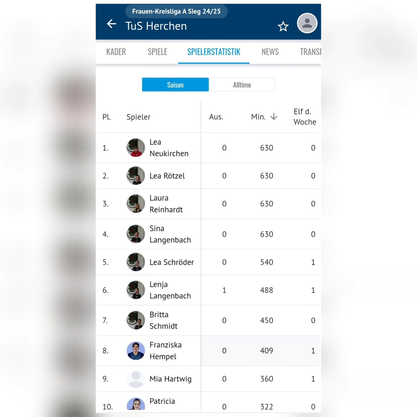 Echte Dauerbrenner sind im Kader Lea Neukirchen, Lea Rötzel, Laura "Kuba" Reinhardt und Sina Langenbach, die in jedem Spiel 90 Minuten auf dem Platz standen.