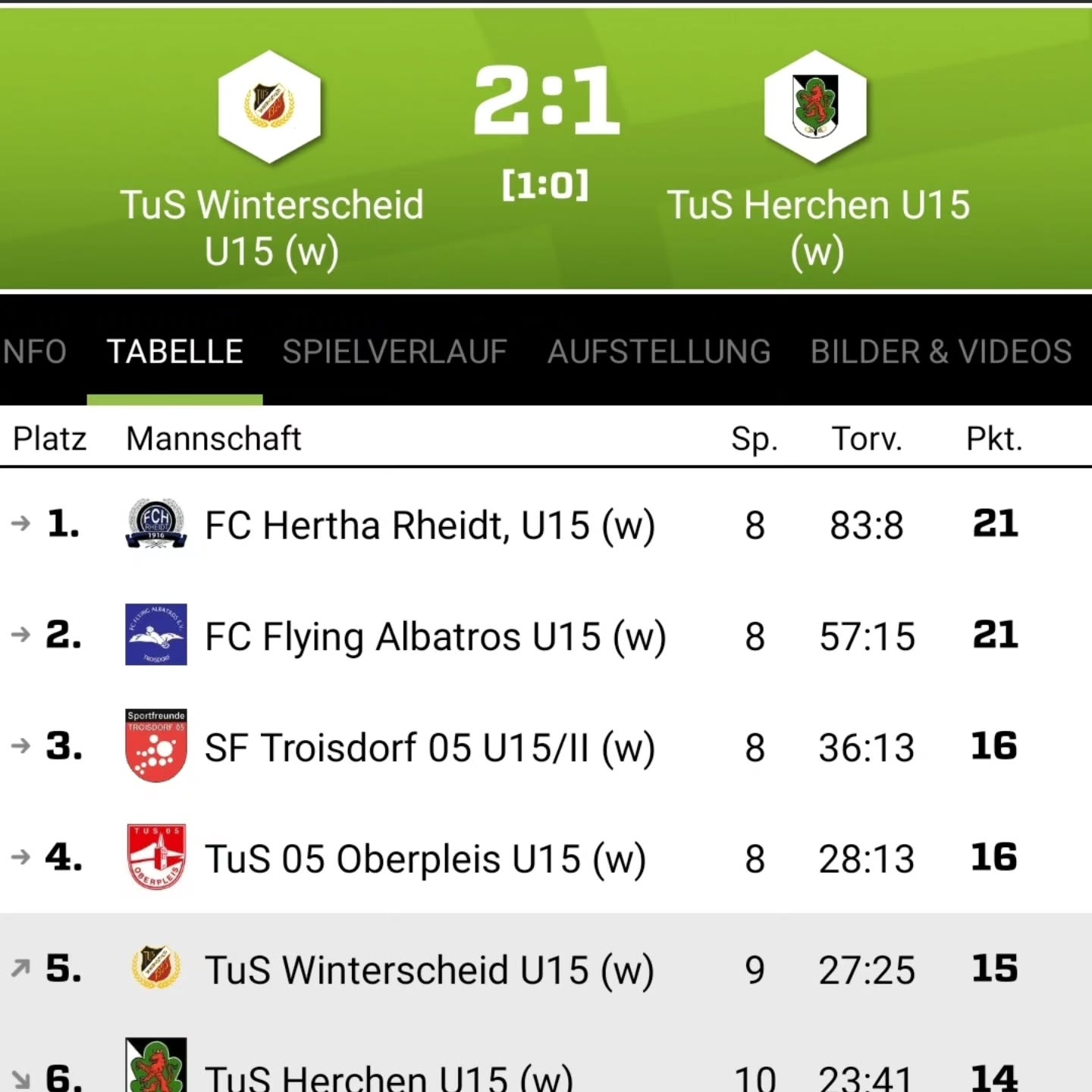 Knappe Niederlage unserer C Juniorinnen. Mit 2:1 (1:1 zur Halbzeit) mussten sich unsere C Juniorinnen im Auswärtsspiel dem TuS Winterscheid geschlagen geben. Im ganzen Spiel hatte Winterscheid nur 2 Torschüsse und beide waren drin. Abhaken und nach vorne gucken. Vor der Winterpause steht noch ein Spiel auf den Programm. Am 14.12. geht's für unsere Mädels zum SV Menden 2. Anstoß ist um 14 Uhr.