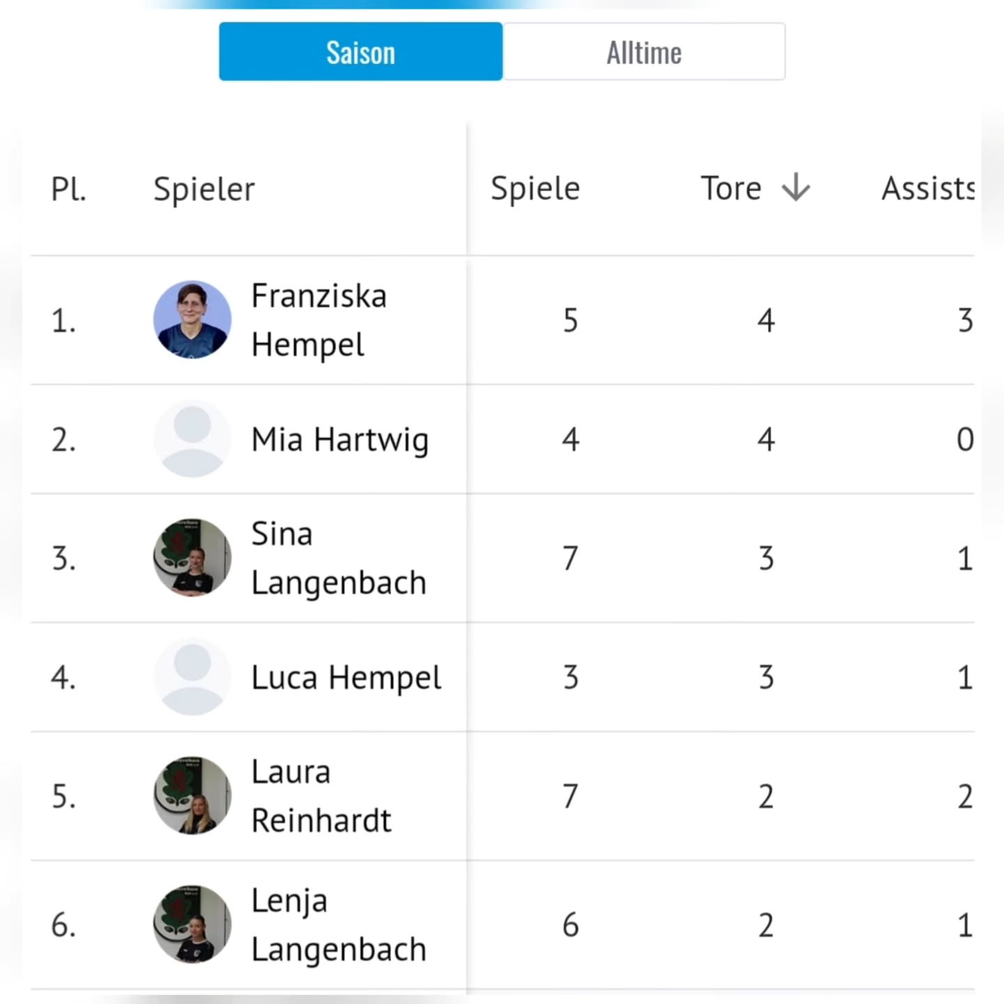 Top-Torjäger sind Mia Hartwig mit 4 Treffen (in 4 Spielen) und Franzi Hempel mit ebenfalls 4 Treffen (in 5 Spielen). Die weiteren Treffer in der Hinrunde erzielten Sina Langenbach (3), Luca Hempel (3), Lenja Langenbach (2) und Laura Reinhardt ((2).